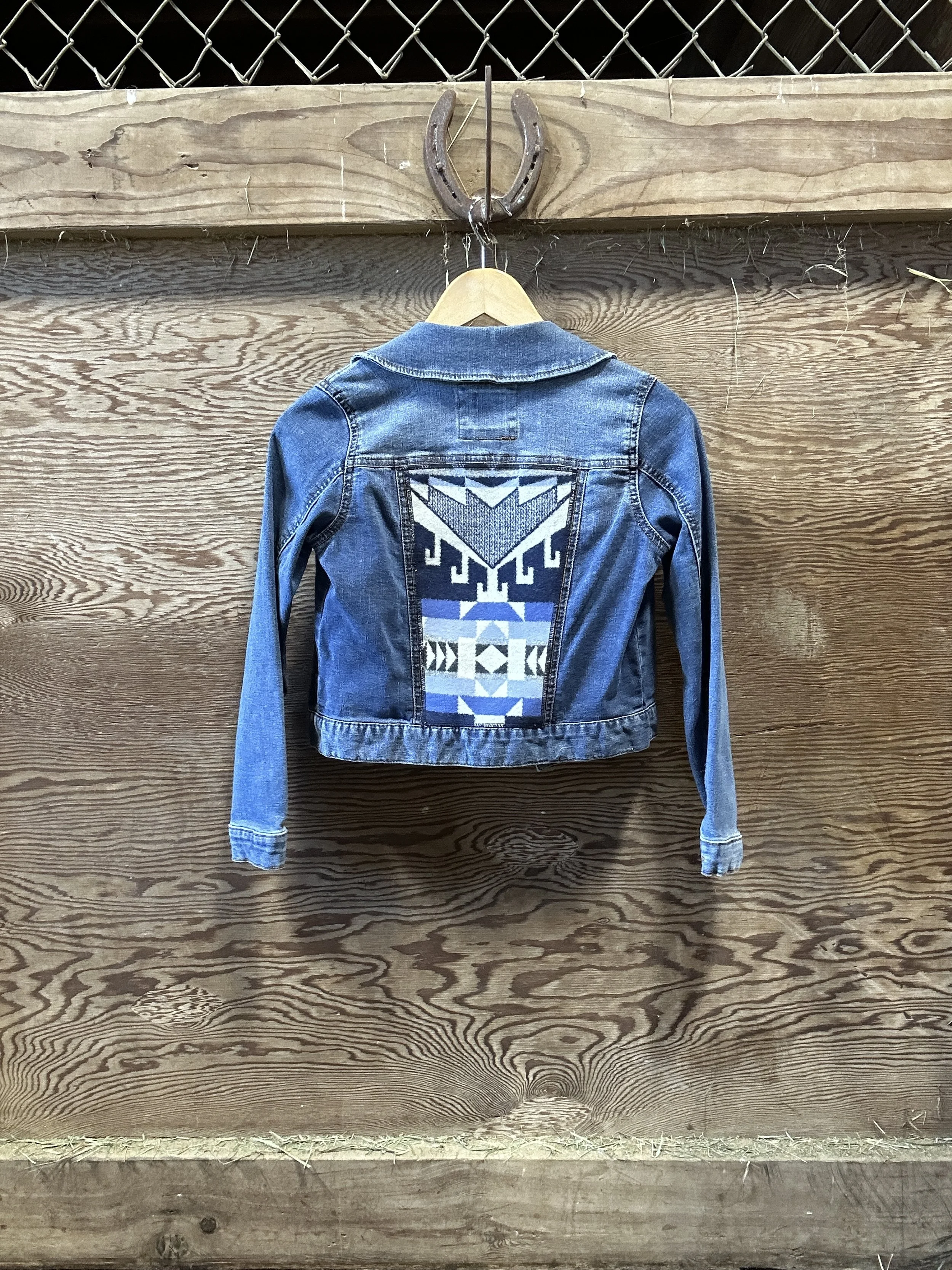 A classic fitting kid’s jean jacket with 2% spandex for a comfy fit. This jacket is customized with genuine Pendleton Wool. A fun addition to any girl’s closet.
